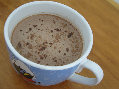 Serve in a cup with a dash cinnamon and a dash cocoa powder on top.