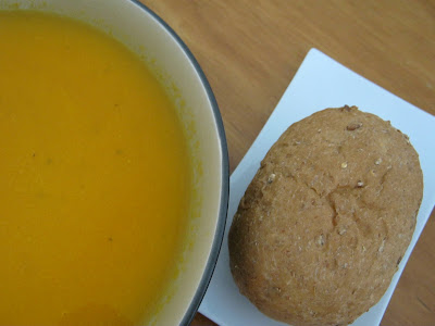 When I came back I had some gingered carrot soup that I got out off the freezer tow days ago. And a whole wheat bun with Earth Balance buttery spread!