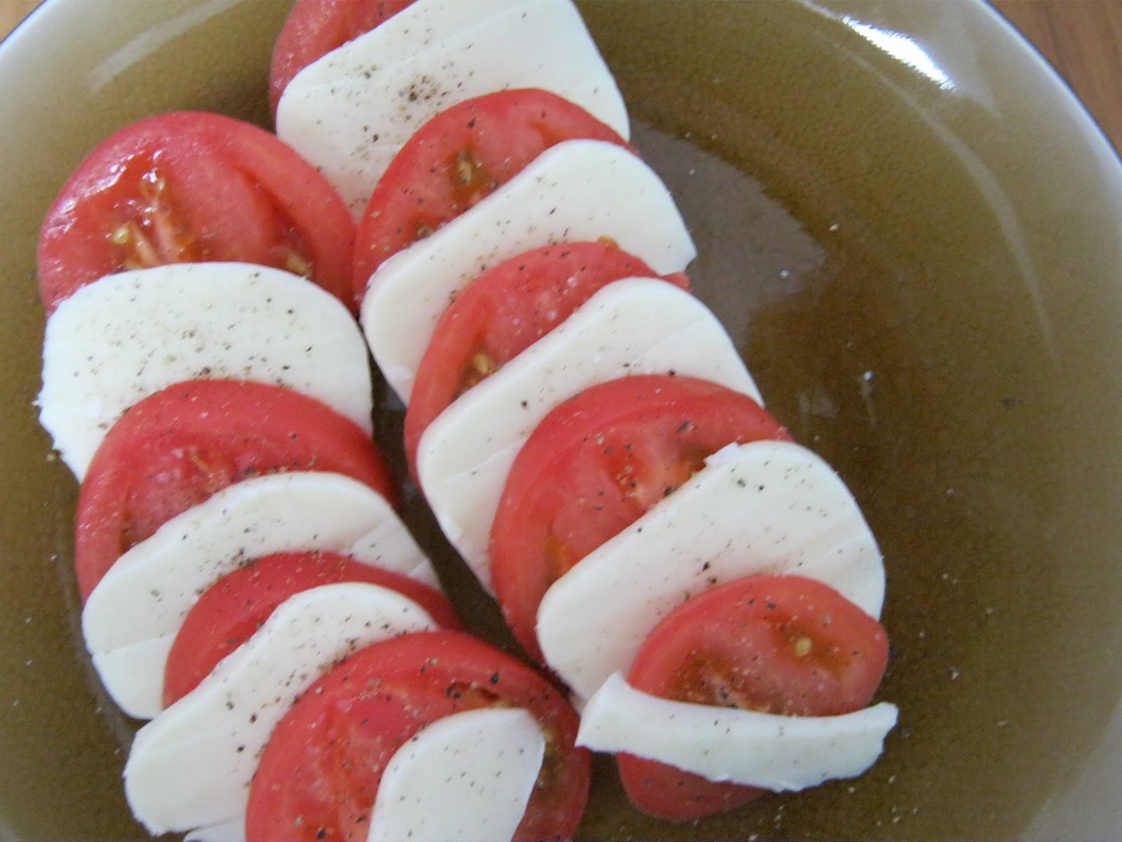 We talked in bed while eating pink tomatoes with mozzarella! When I came with the plate, Diran told me that he wanted to ask me to make this but decided to let me make what I wanted!