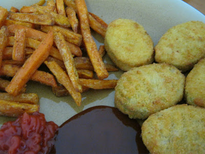 Veggie Patch broccoli bites and spicy sweet potato fries.