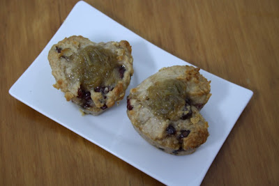 This morning I had a physiological psychology class at 8:30 and I was happy to have a ready to eat breakfast: the rhubarb and cranberry muffins I made last night! I had two small muffins.