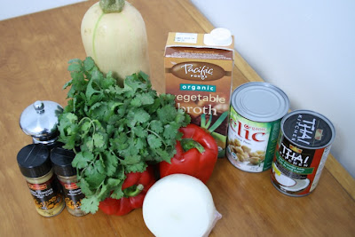 Directions: Heat oil in a large pot over medium heat. Stir in onion and bell peppers and cook until the onion is translucent.  Stir in curry powder and cumin and cook for 2 minutes. Add broth and squash, bring to a boil, cover, reduce heat and simmer for 20-25 minutes, until squash is tender.
