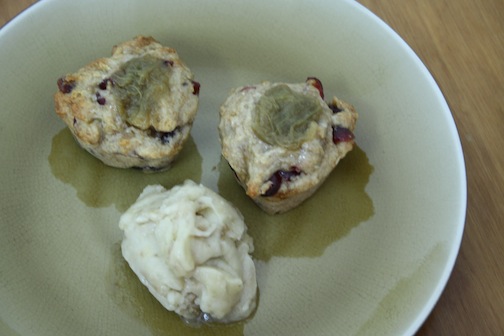 Today’s breakfast was two rhubarb and cranberry muffins and 1/2 serving of banana soft serve.