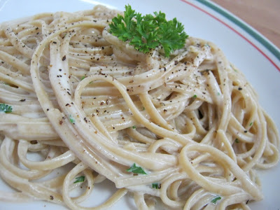 I then came home and made lunch: whole-wheat linguine with an alfredo sauce.