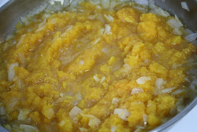 Mash the squash with a fork or potato masher. Heat oil in a skillet over medium heat. Add onion and cook until it begins to be translucent. Add mashed squash and broth, mix and cook until all the liquid is absorbed, about 10 minutes.