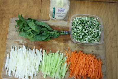 Coming home from the grocery store, I made dinner (part of): delicious spring rolls. With a photo tutorial :).
