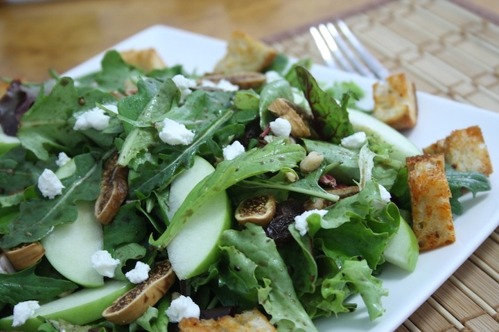 But when I ate this salad with dried figs (yum), crunchy apples (double yum) and balsamic vinaigrette (my favorite!), I definitely didn’t forget about it. Because it was so, so good. And I did decide to make it because this salad was easy to make, and would probably be even better if I made it ;-).
